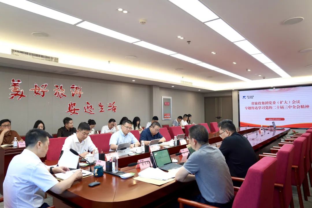 7月22日,省旅投集團召開黨委(擴大)會議專題傳達學習黨的二十屆三中全會精神,并研究集團貫徹落實意見。集團黨委書記、董事長游勇主持會議,集團領導班子成員參加會議。總部各部門負責人、各二級公司主要負責同志列席會議。
