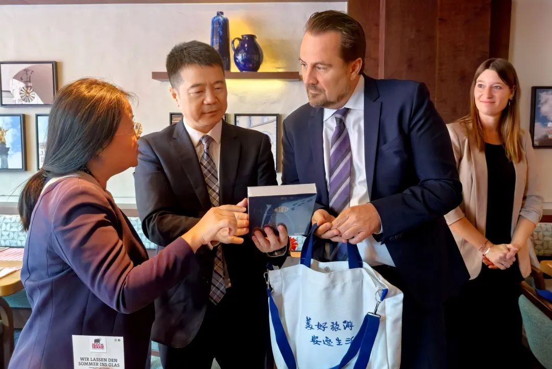 在巴伐利亞州,游勇與巴伐利亞州食品、農業、林業和旅游部旅游營銷部旅游產業部門負責人Eva G?tz博士、慕尼黑國際展覽中心 (Freizeitmesse free) 展覽總監Katrin Leideritz 女士、巴伐利亞州投資促進局投資者服務高級經理Fang Wang 女士、慕尼黑州首府、勞動和經濟事務部地區營銷主管Rita Roider女士等機構負責人座談,詳細介紹了省旅投集團旗下景區、酒店、康養及旅行社資源等情況,雙方聚焦文旅資源開發、市場聯動、文旅展會市場拓展等進行深入交流,推動項目合作精準對接。
