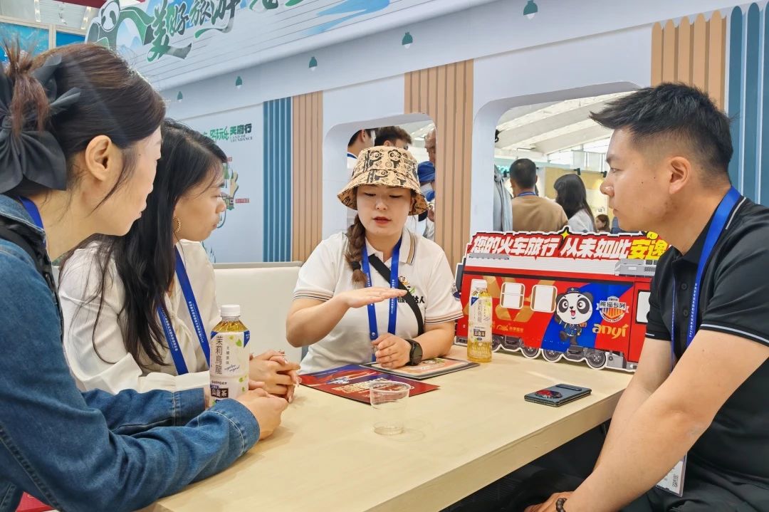 在四川館內,“安逸號熊貓專列沉浸式主題展區” 成為焦點。集團展區以 “天府之國” 為主題,通過1:1復刻的熊貓專列,全景式呈現24小時醫護服務、智慧適老化居住空間、舌尖天府 、旅投文創、旅投嚴選等特色服務內容,打造集體驗、互動、展示于一體的 “移動會客廳”。觀眾不僅能近距離感受熊貓專列的舒適與便捷,還可免費參與有獎互動打卡,沉浸式體驗 “銀發旅游+” 的創新場景。現場同步陳列集團“美好旅游 安逸生活”“安逸四川 花開四季” 主題文創產品,強化“四川旅投” 品牌記憶,表達“旅游即生活”的品牌理念。